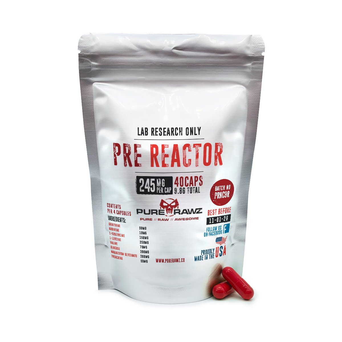 - Pre-Reactor capsules are intended for research-related studies, with an optimal dosage set at 4 capsules per dose. They are available in three variants: 245mg per capsule, 40 capsules per bottle (9.8g total), 245mg per capsule, 80 capsules per bottle (19.6g total), and 245mg per capsule, 120 capsules per bottle (29.4g total).